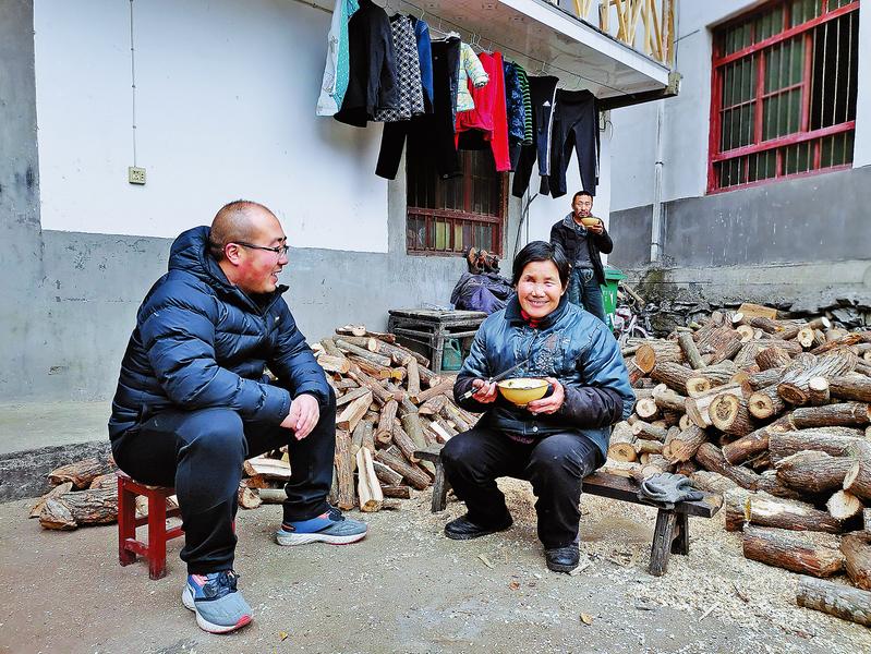 2018年冬季的一天,駐村工作隊(duì)一大早便入戶檢查全村的安全飲水問(wèn)題。大家跑完了坡上的十幾戶人家,已到日落時(shí)分,都已疲憊不堪,但最偏遠(yuǎn)的住在山頂?shù)闹芰ω?cái)家還沒有去,一個(gè)來(lái)回要走20里路。張樂(lè)讓大家先回去休息,自己堅(jiān)持上山走訪完最后一家。見周力財(cái)家飲水安全達(dá)標(biāo),他終于放下了心,于是盤腿坐炕、端碗喝水、遞煙點(diǎn)火,詢問(wèn)起他家種植的魔芋和板栗,親熱得像兄弟倆。聽到周力財(cái)說(shuō)他家剛魔芋就賣了5萬(wàn)塊錢,張樂(lè)又叮囑他抓緊給板栗樹進(jìn)行科管。等張樂(lè)回到村上,已是晚上11點(diǎn)了。