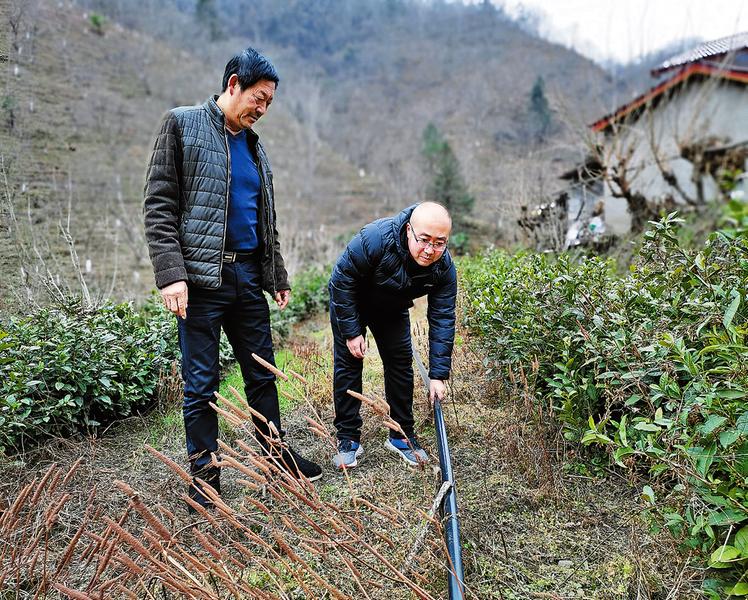 張樂(lè)來(lái)到郭興和家里,幫他查看茶園的灌溉管道