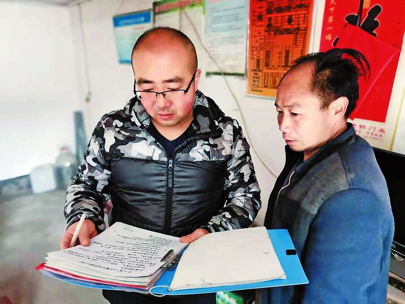 張樂(lè)在五組貧困戶毛易友家核實(shí)產(chǎn)業(yè)收入,為下一步發(fā)展做好計(jì)劃。