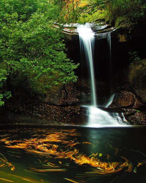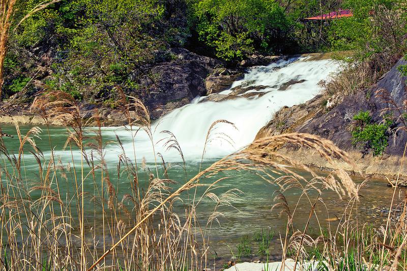 從草甸沿溪而下,穿過峽谷密林,但見道旁有一古櫟樹,樹齡約500年,當(dāng)?shù)厝朔Q其為千手櫟樹。在櫟樹的下方隱藏著一道盛景,四周古木遮天,濃蔭蔽日,中間一股清泉自山谷傾瀉而下,墜入深潭。潭水清冽,深不可測。秋季水盈,吼聲裂肺,平日里水流像蛇那樣蜿蜒前行,流過一潭又一潭。
