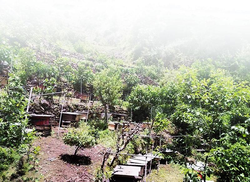 芳菲四月,燦爛的陽光照耀著雙河村兩岸花叢中飛舞的蜂群。三組養(yǎng)蜂人徐吉平顯得很興奮,他逢人就說:“我今年又增加了10箱蜂,雖然今年的春凍蜂群受了點損失,但我會努力養(yǎng)好蜂,相信來年肯定會有一個好收成。”筆者在徐吉平的養(yǎng)蜂場看到,屋檐下、山坡邊,一個個蜂箱擺放在綠草叢中,蜜蜂在林中穿梭飛舞,耳邊盡是嗡嗡聲。徐吉平揭開一個蜂箱,拎起蜂巢,只見上面密密麻麻爬滿了蜜蜂。徐吉平是當?shù)赜忻闹腥A蜂養(yǎng)殖大戶,從他爺爺輩開始養(yǎng)蜂算起,到他這一代,養(yǎng)蜂經驗已是相當豐富。去年他家養(yǎng)了45箱中華蜂,為他帶來了可觀的收入。“我們祖祖輩輩都生長在這里,除了種地,養(yǎng)蜂優(yōu)勢最明顯。以前我養(yǎng)的土蜂一年收入只有1000多元?,F(xiàn)在養(yǎng)蜂技術提高了,在大流蜜期10到15天就能取一次蜜,去年收入近3萬元。”徐吉平高興地說。