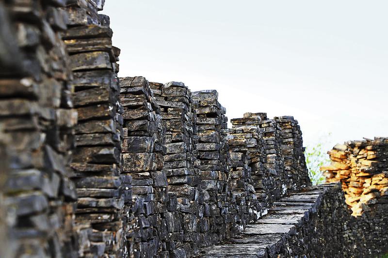 我們來(lái)到位于鎮(zhèn)安縣米糧鎮(zhèn)的西寨,山巔樹木橫生,寨墻高聳,散發(fā)著金屬光芒的黑色片石一層層壘砌成寬厚的鐵壁,顯得雄渾壯觀。西寨建在山脊上,易守難攻。據(jù)了解,這個(gè)山寨是當(dāng)?shù)厝罕姙槎阃练饲謹(jǐn)_而建,寨內(nèi)機(jī)關(guān)重重。如今,寨門左面內(nèi)側(cè)還留有幾孔外小內(nèi)大呈斗形的射擊孔。寨墻上有防翻石沿,寨門上方設(shè)有洞口,都有抵御外敵的作用。