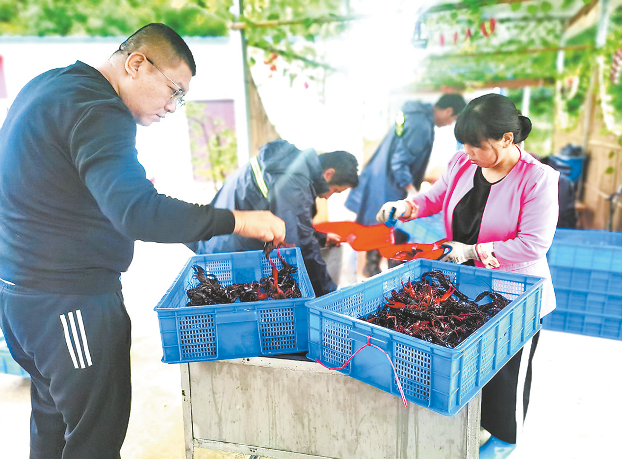 工人分揀小龍蝦