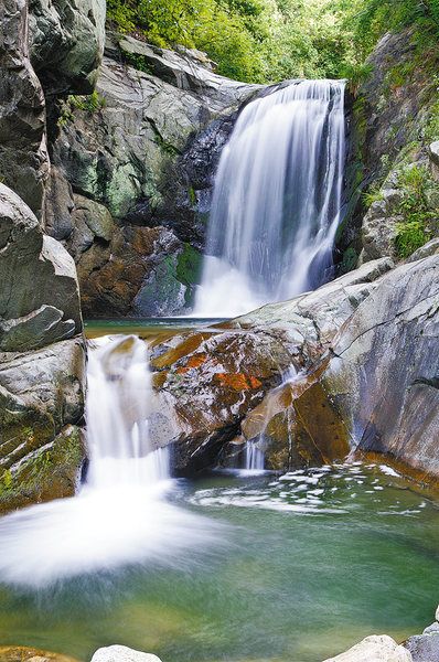 迷魂陣水秀,是鎮(zhèn)安河的源頭之一,有逸龍?zhí)丁⑹T瀑布、葫蘆瀑布等景觀,其中葫蘆瀑布最耐人尋味。葫蘆瀑布又稱吊罐潭,瀑布上大下小像個寶葫蘆,石潭口小肚大猶如農(nóng)家燒水的吊罐,故名吊罐潭,十分罕見。