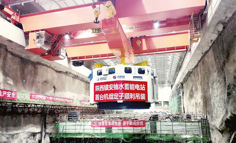 陜西鎮(zhèn)安抽水蓄能電站首臺(tái)機(jī)組定子順利吊裝