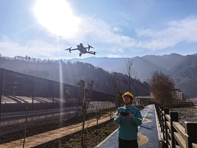 姚舜禹將無(wú)人機(jī)升空,準(zhǔn)備對(duì)10kV132大坪線開展智能巡查。
