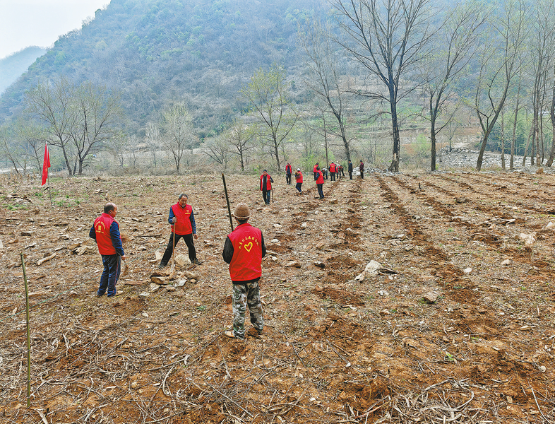 近日,雙喜村志愿服務(wù)隊(duì)搶抓農(nóng)時(shí),協(xié)助村民建設(shè)密植桑園。